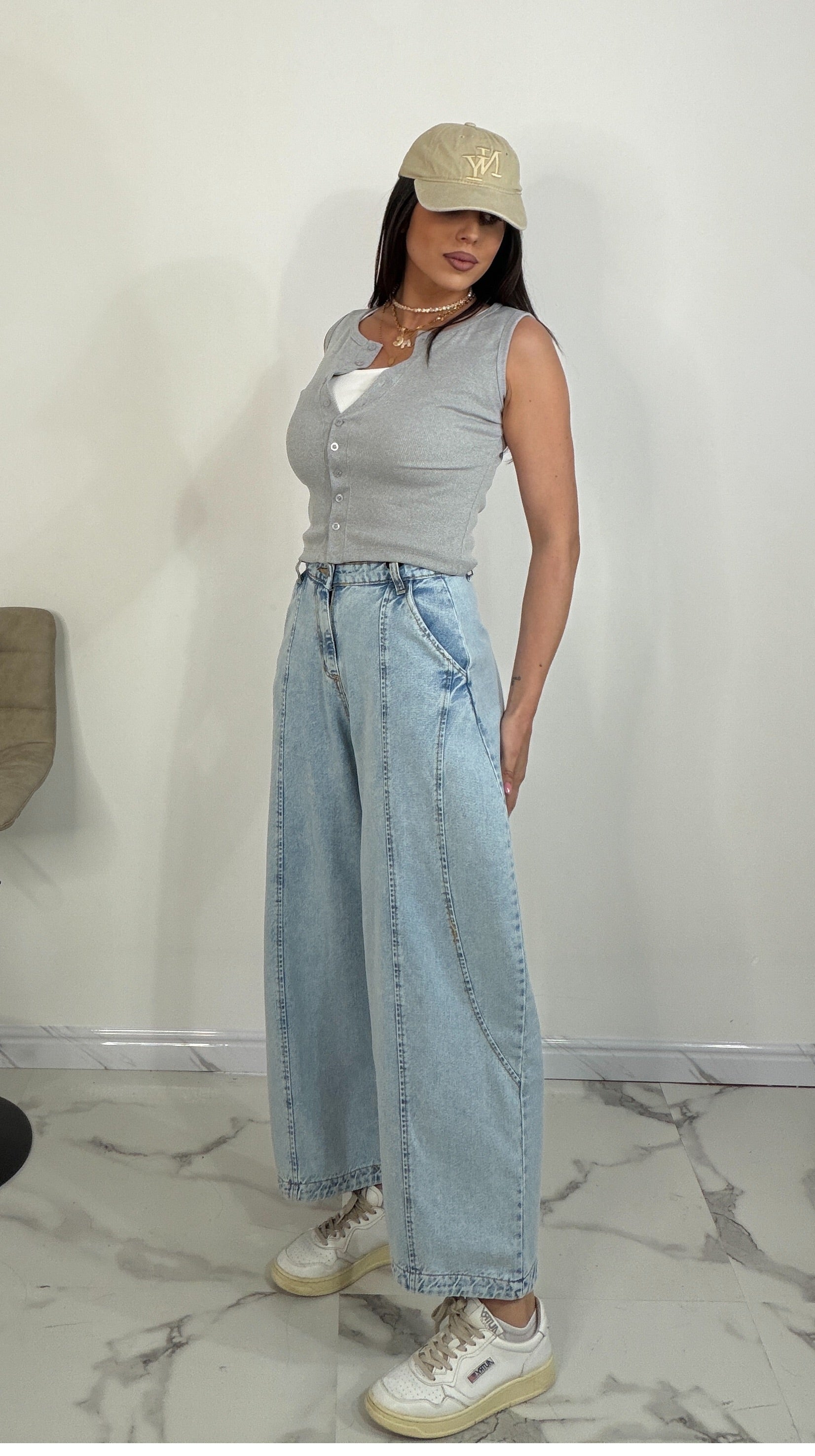Canottina costine bottoncini - Trendy